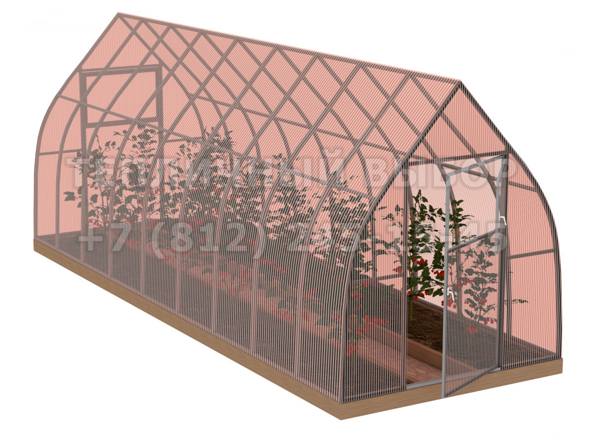 - практичная конструкция с дверьми в каждом торце обеспечивает легкий доступ в теплицу и её проветривание