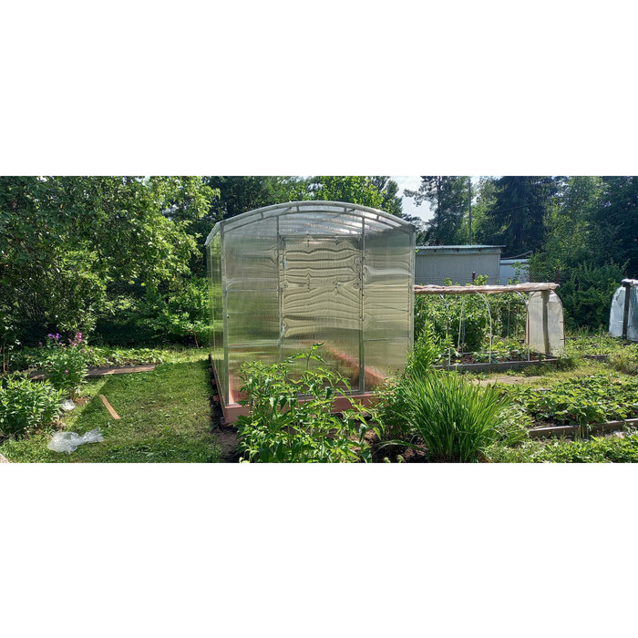 • теплица рекомендована для северных широт с большим количеством осадков, выдерживает порывистые ветра и сильные снегопады, не деформируется под слоем слежавшегося снега толщиной до 90 см;